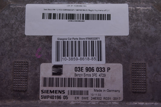 Seat Ibiza VW 1.2 ECU 03E906033P / 5WP40196 05 Plug & Play Immo off