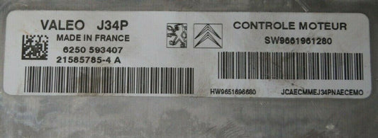 Citroen C3 ECU J34P 21585785-4 A SW9661961280 HW9651696680
