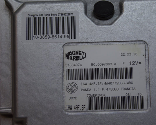 FIAT Panda ecu 1.1 IAW 4AF.SF HW407 20BB-WR0 51834074 plug and play